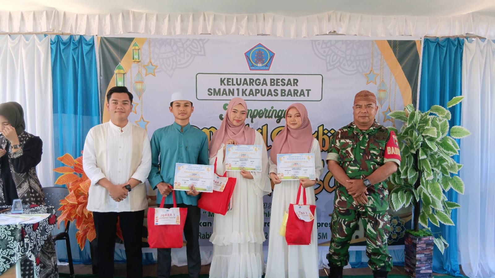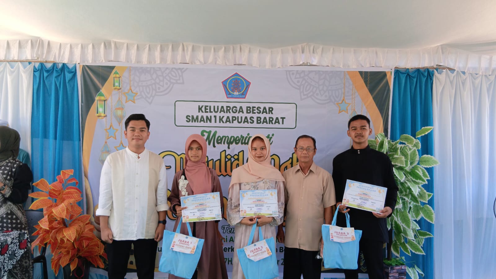 Kami dengan bangga mengumumkan para pemenang lomba GEMASA dalam rangka Gebyar Maulid SMAN 1 Kapuas Barat. Lomba yang diadakan dengan tujuan untuk meningkatkan kreativitas dan rasa cinta kepada Nabi Muhammad SAW ini berlangsung dengan penuh semangat dan antusiasme. Para peserta menunjukkan bakat dan keterampilan terbaik mereka dalam berbagai cabang lomba, baik itu lomba abzan, saritilawah, kaligrafi, nasyid, dan fashion show.